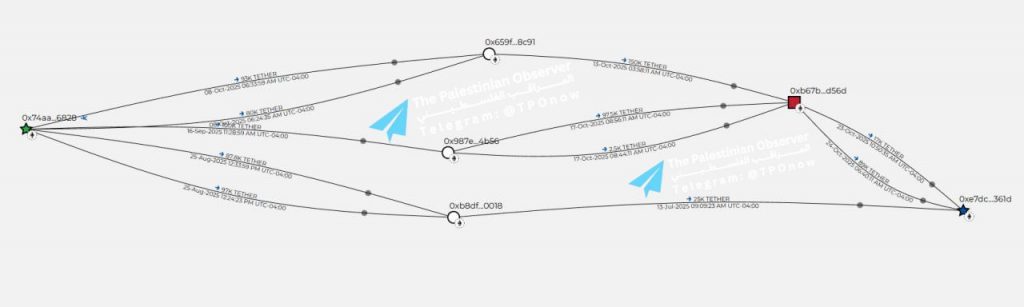 The Palestinian Observer’s analysis of Ethereum transaction records, based on public on-chain data, exposes a financial network underpinning Al-Majd Europe that further undermines its humanitarian credentials. The pattern can be summarised as follows: